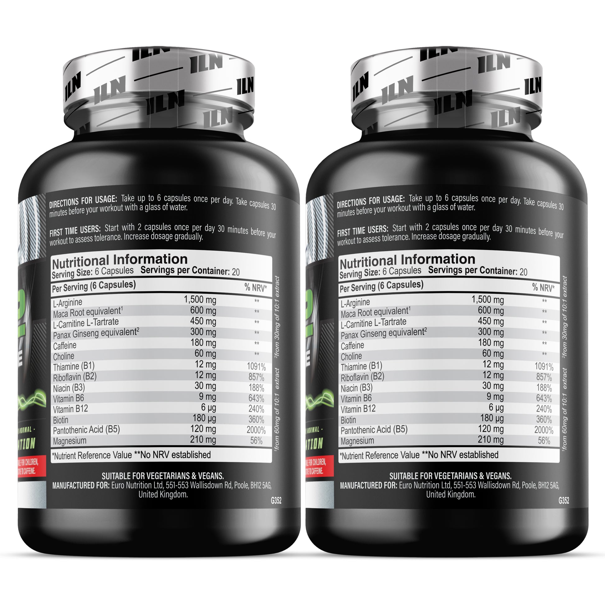 - WITH L ARGININE, L CARNITINE, CAFFEINE & HERBAL EXTRACTS – The huge blend includes a massive 1,500mg L-Arginine, plus 450mg L-Carnitine L-Tartrate, 180mg caffeine and 210mg of Magnesium.